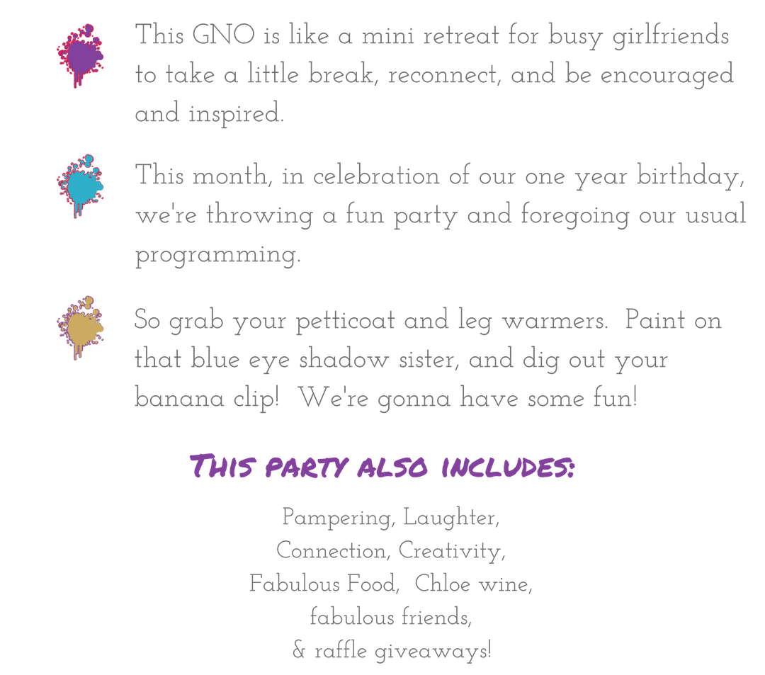 So grab your girlfriends and join us for a done-for-you GNO, 80’s style!