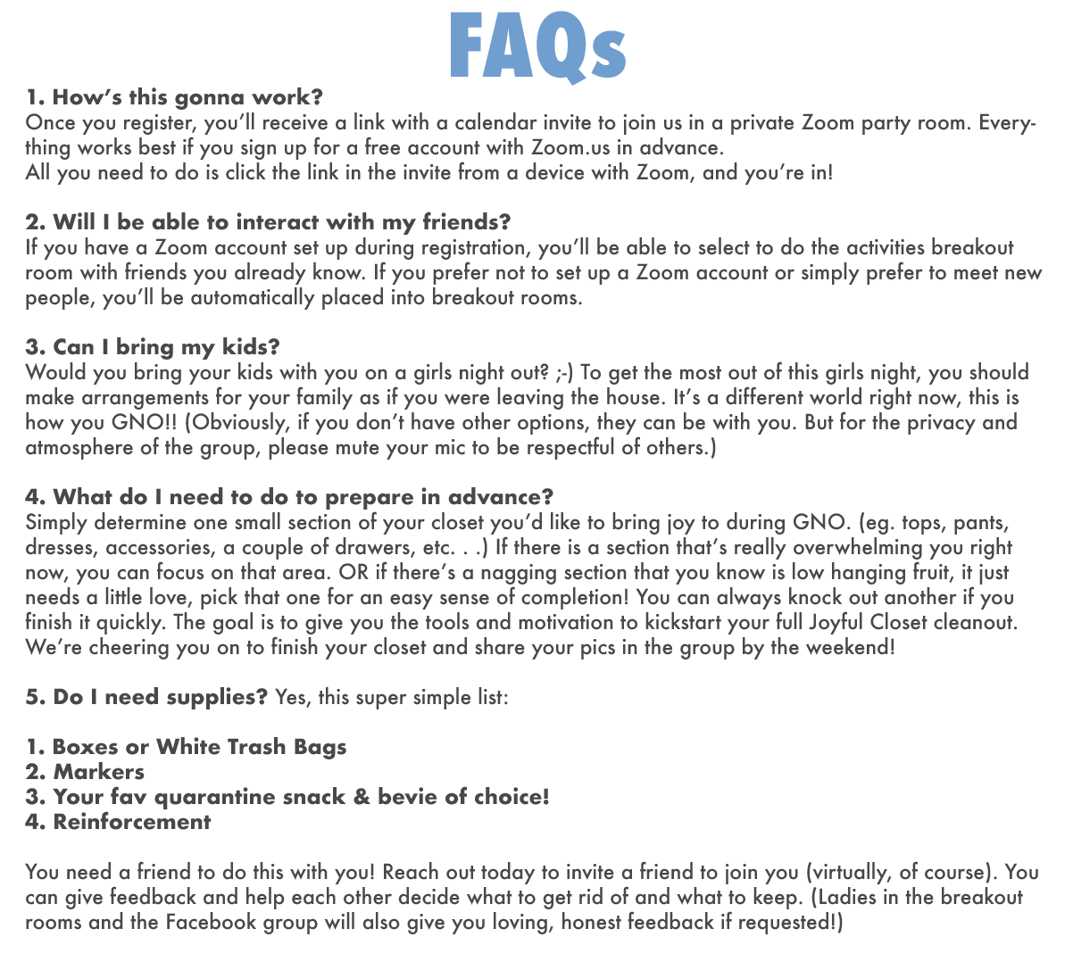 ~ Because seriously, when have you ever had the chance to clean out your mind and closet with a group of friends by your side?