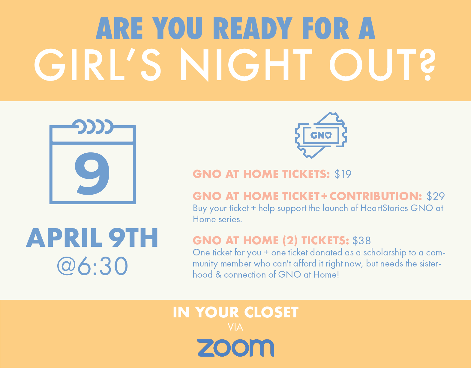 Scholarships available! Can’t swing a ticket this month, but really want to attend our GNO at Home? Submit this form and we’ll hook you up!