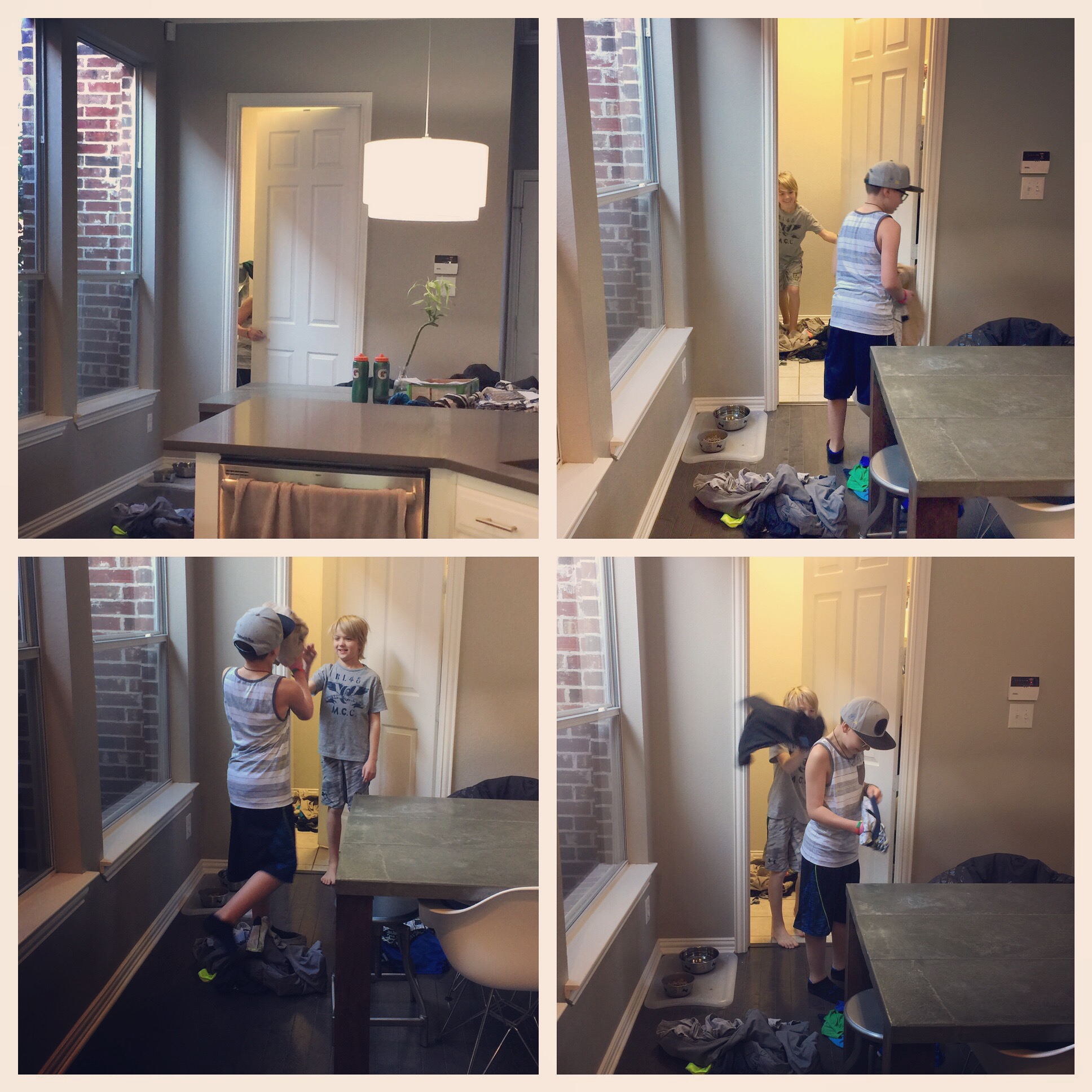 The sound of little boys sorting laundry coming from the kitchen is an unusual and interesting sound. At first it was only the mumble